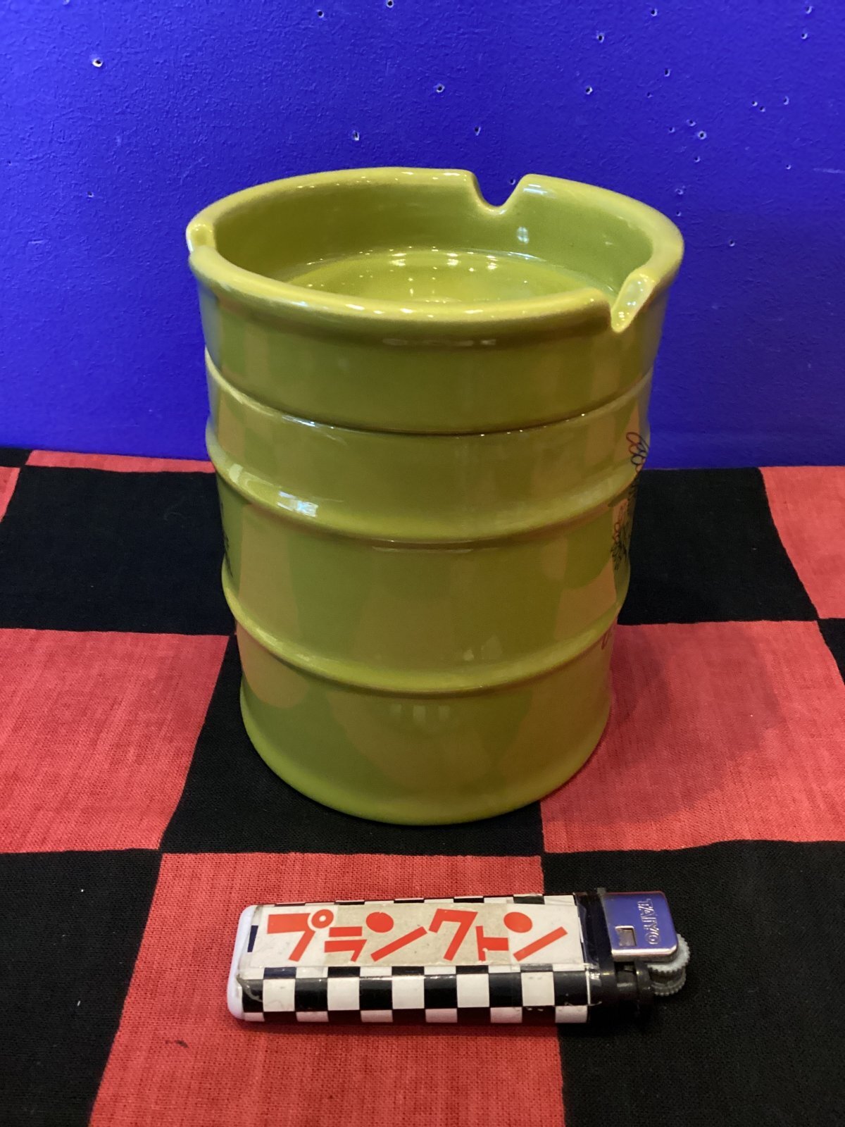 ドラム缶アッシュトレイ 陶器灰皿(USアーミー/ARMY/イエローグリーン)